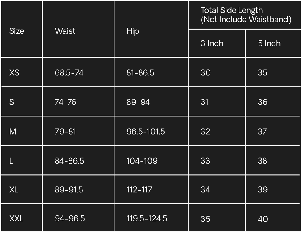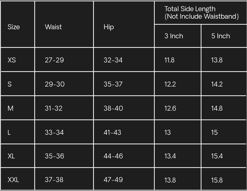 Find your second-skin fit with the perfect length. Depending on your preferred length, this chart below can help you decide which shorts fit your preference based on your size.